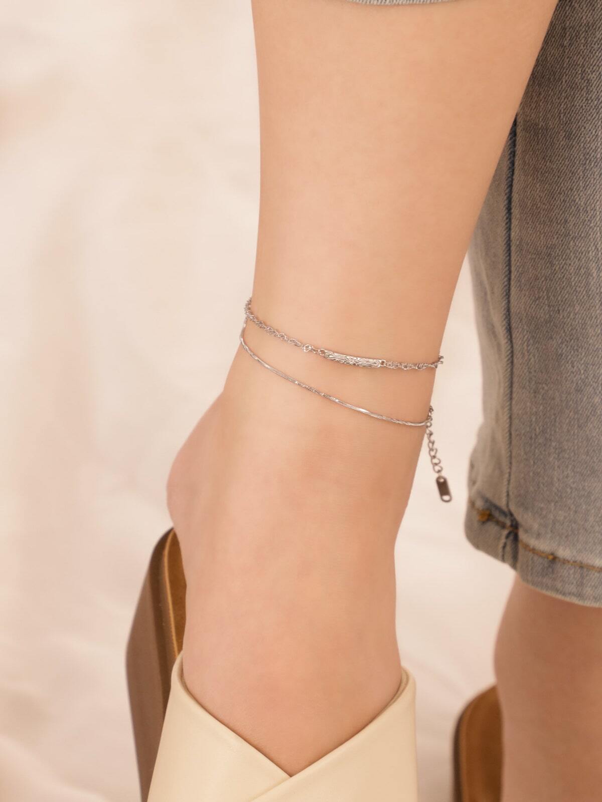 【 screw 】316L plumeria bar anklet #a23