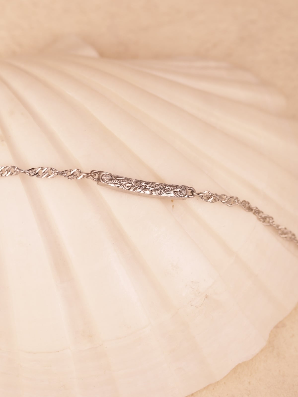 プルメリアの花をモチーフにした、繊細なハワイアン彫りのバーアンクレット。