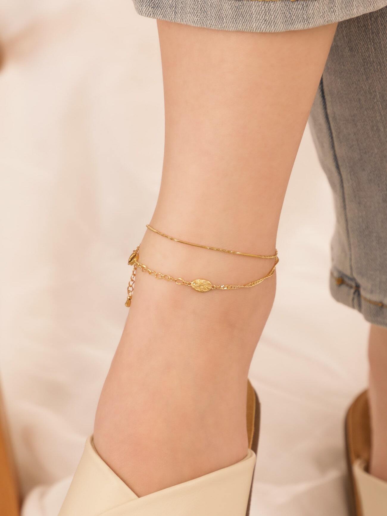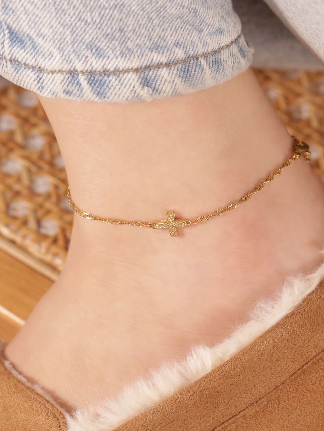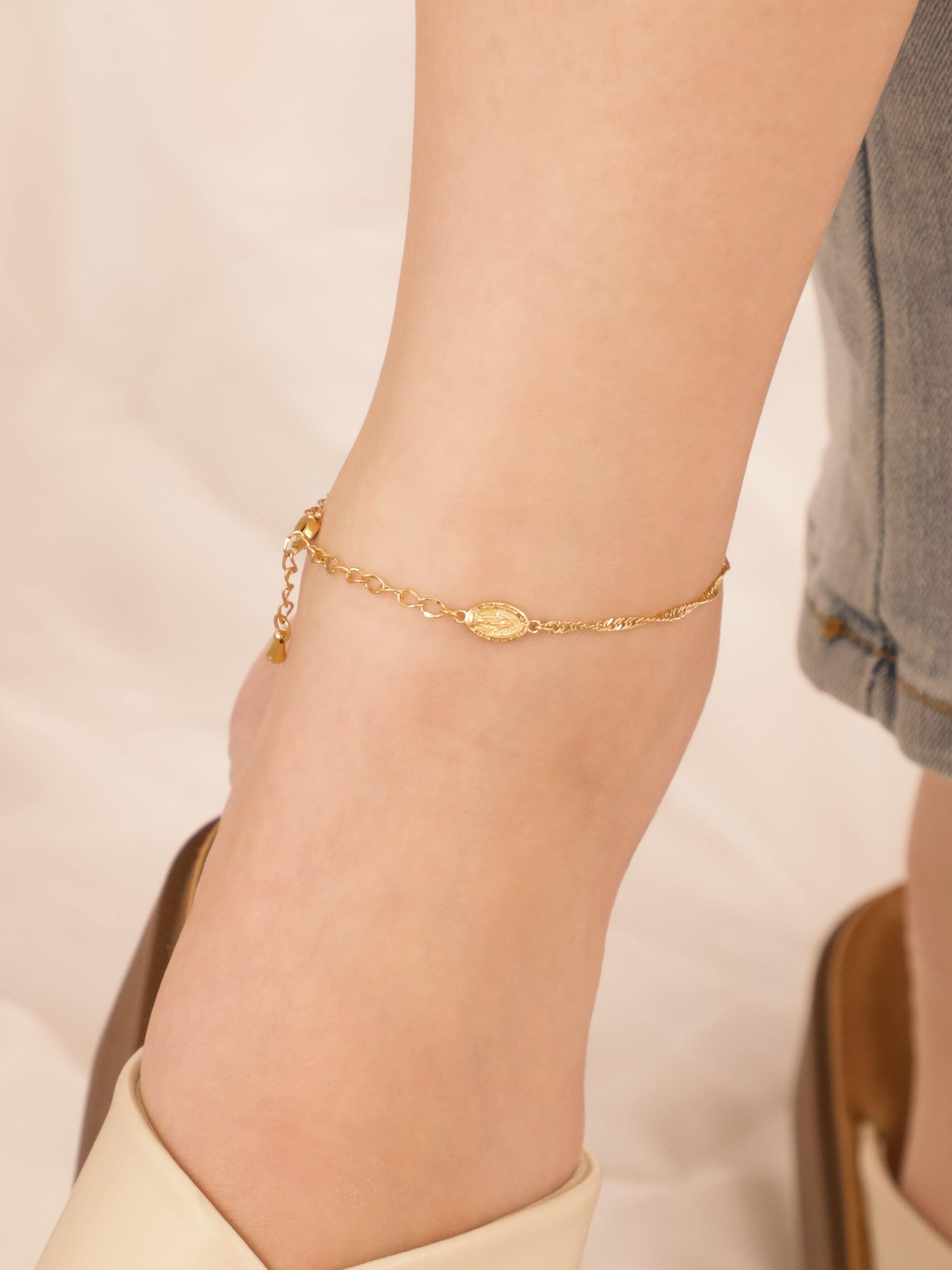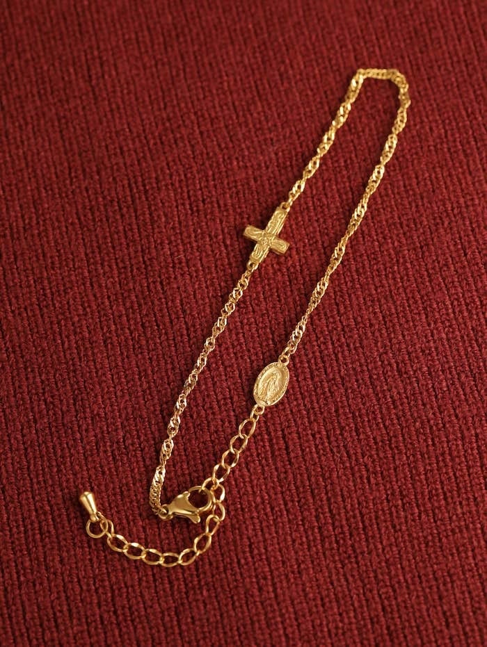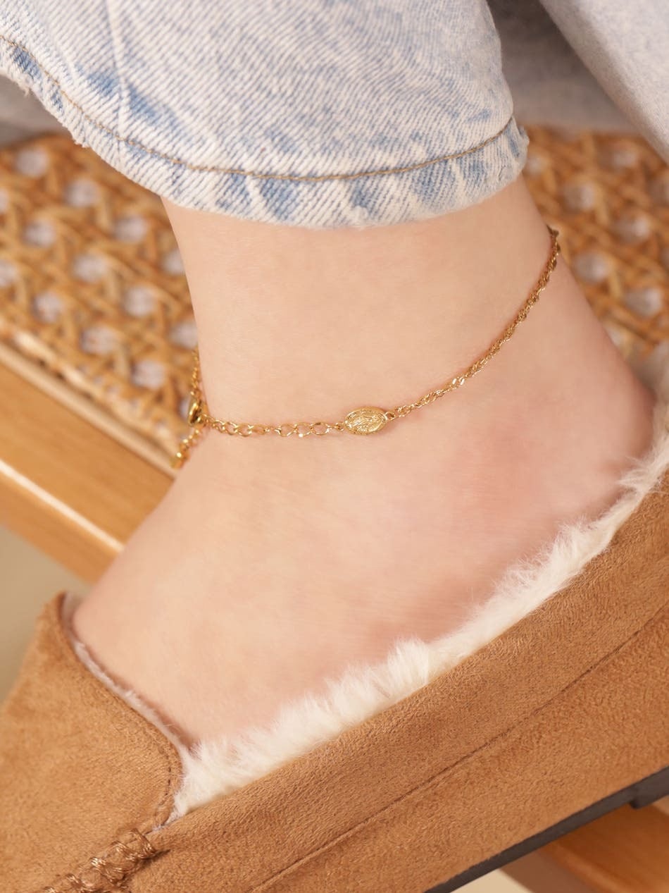 【 screw 】 316L medai & cross anklet #a25