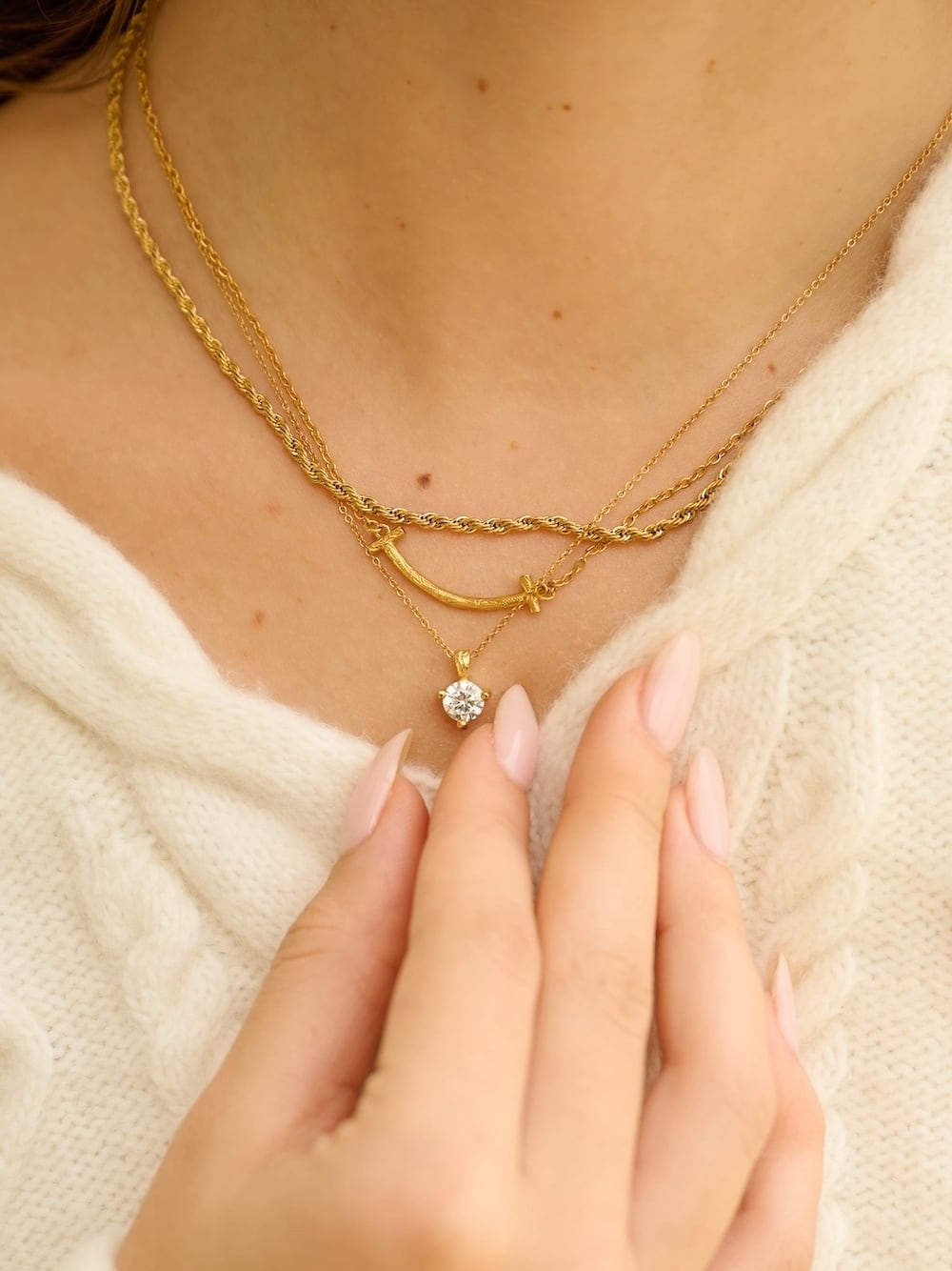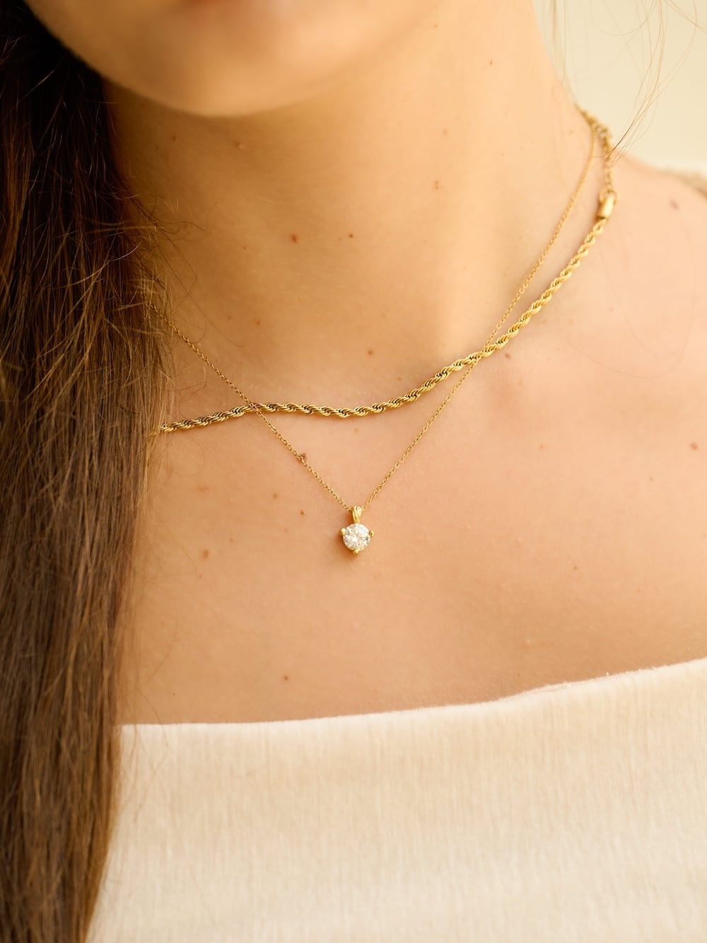 胸元できらめくひと粒の光。