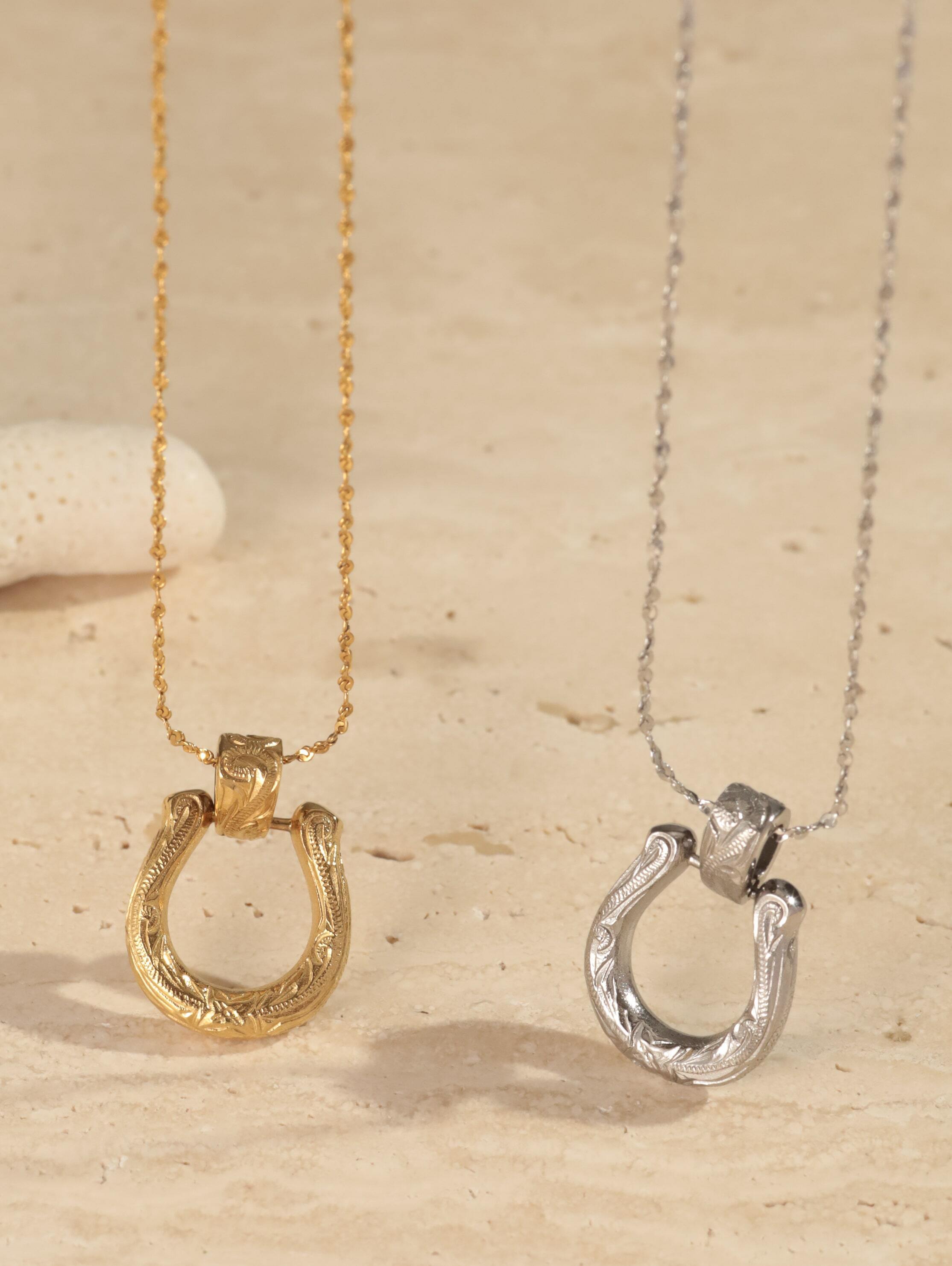 ネックレスとして利用しても良し!、メガネやサングラスをかけるも良し!様々なスタイルでペアで着用できる大人気ホースシューネックレス2点セット(通常17,560円)