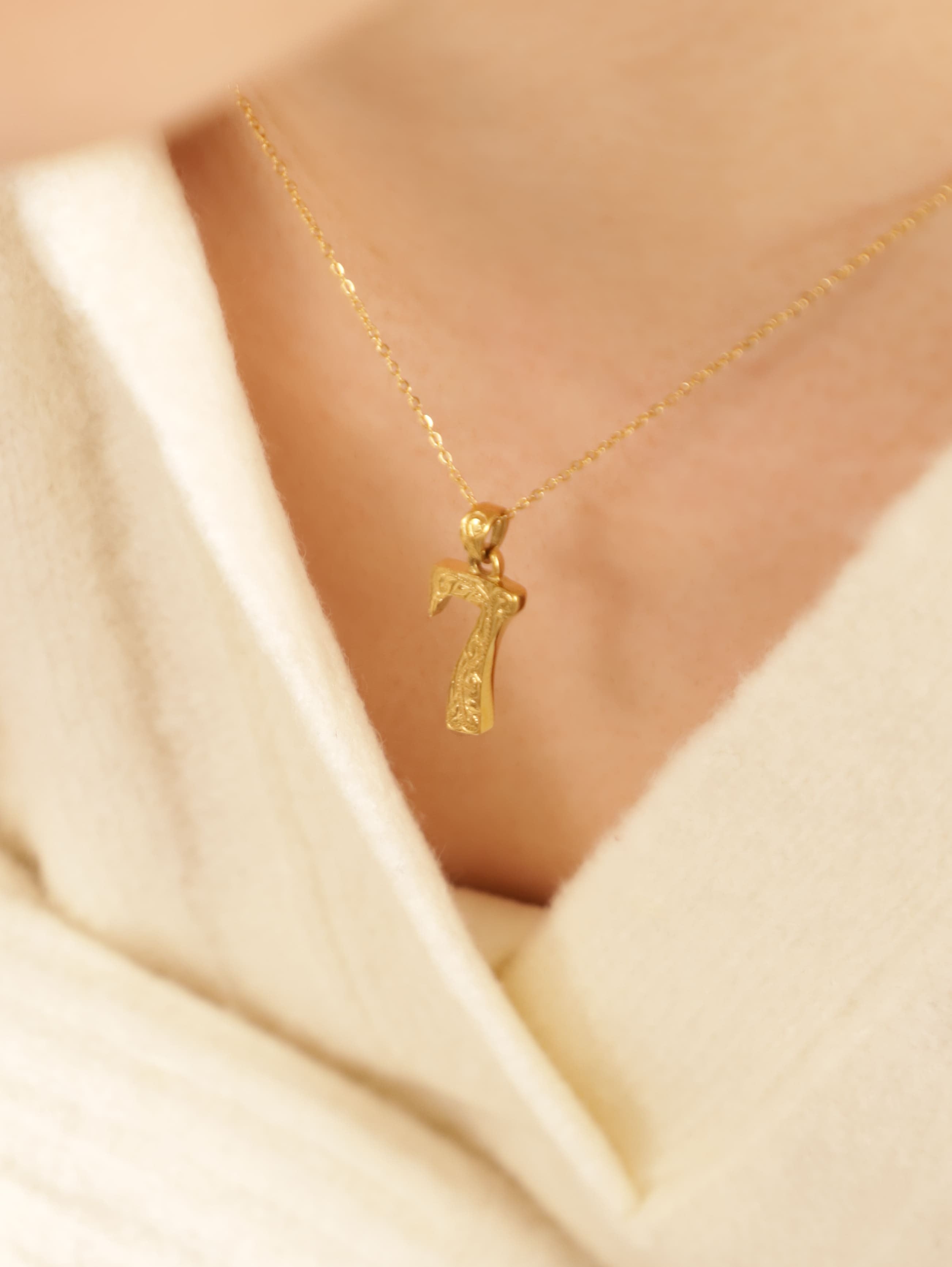 ラッキーナンバーの「7」をモチーフにハワイアンの細かい彫りを施した上品なネックレス....