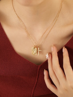 ラグジュアリー感あるクロスのチャームを使用しチャームの裏には高級感のあるゴールドのフレームに太陽モチーフにジルコニアを埋め込んでいますので2wayタイプのネックレスです