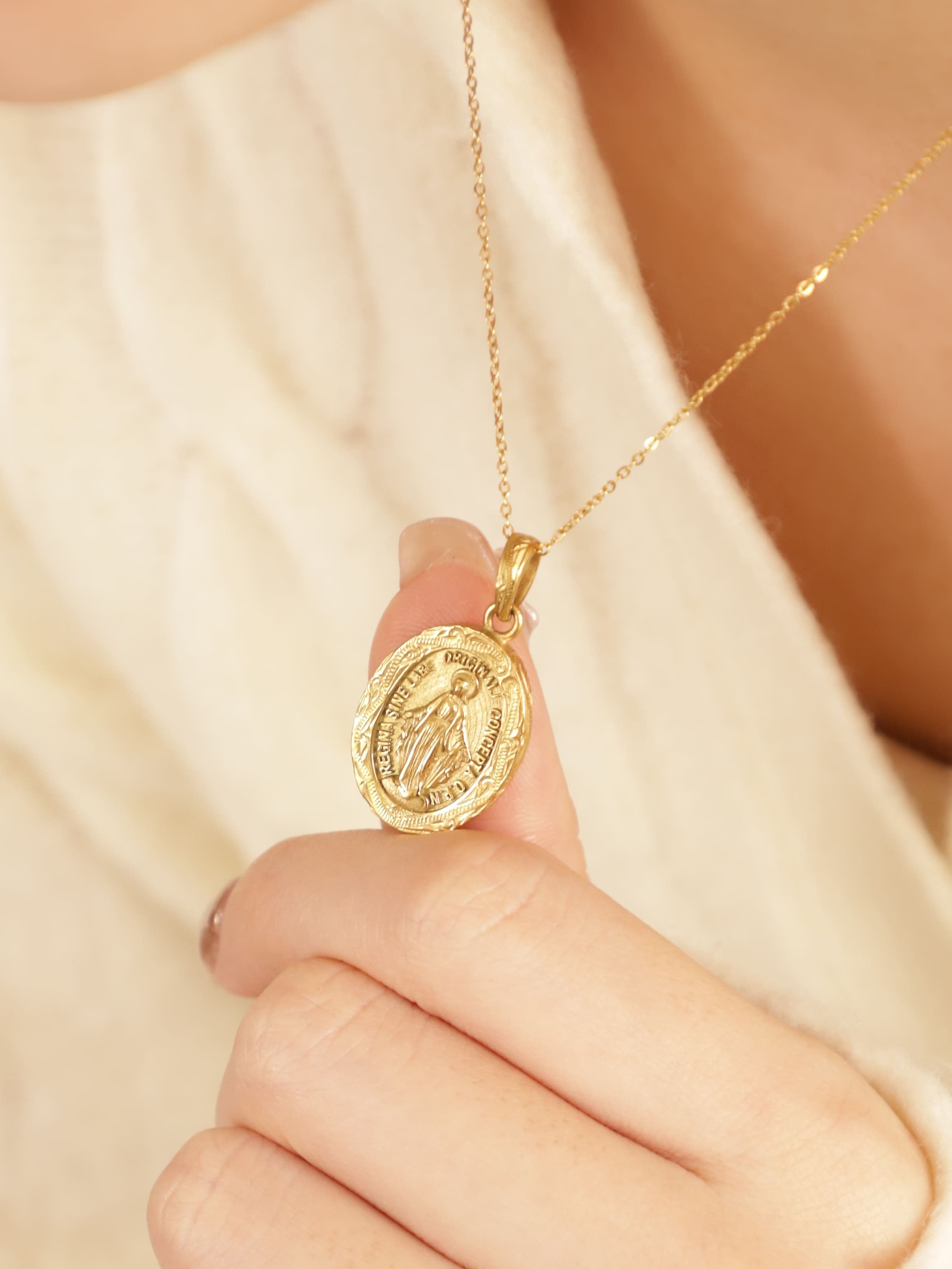 聖母マリア像が描かれたこのメダイペンダントは身に着けて病気が治る等、奇跡のメダイ、不思議のメダイと呼ばれ世界中の人々に愛されています