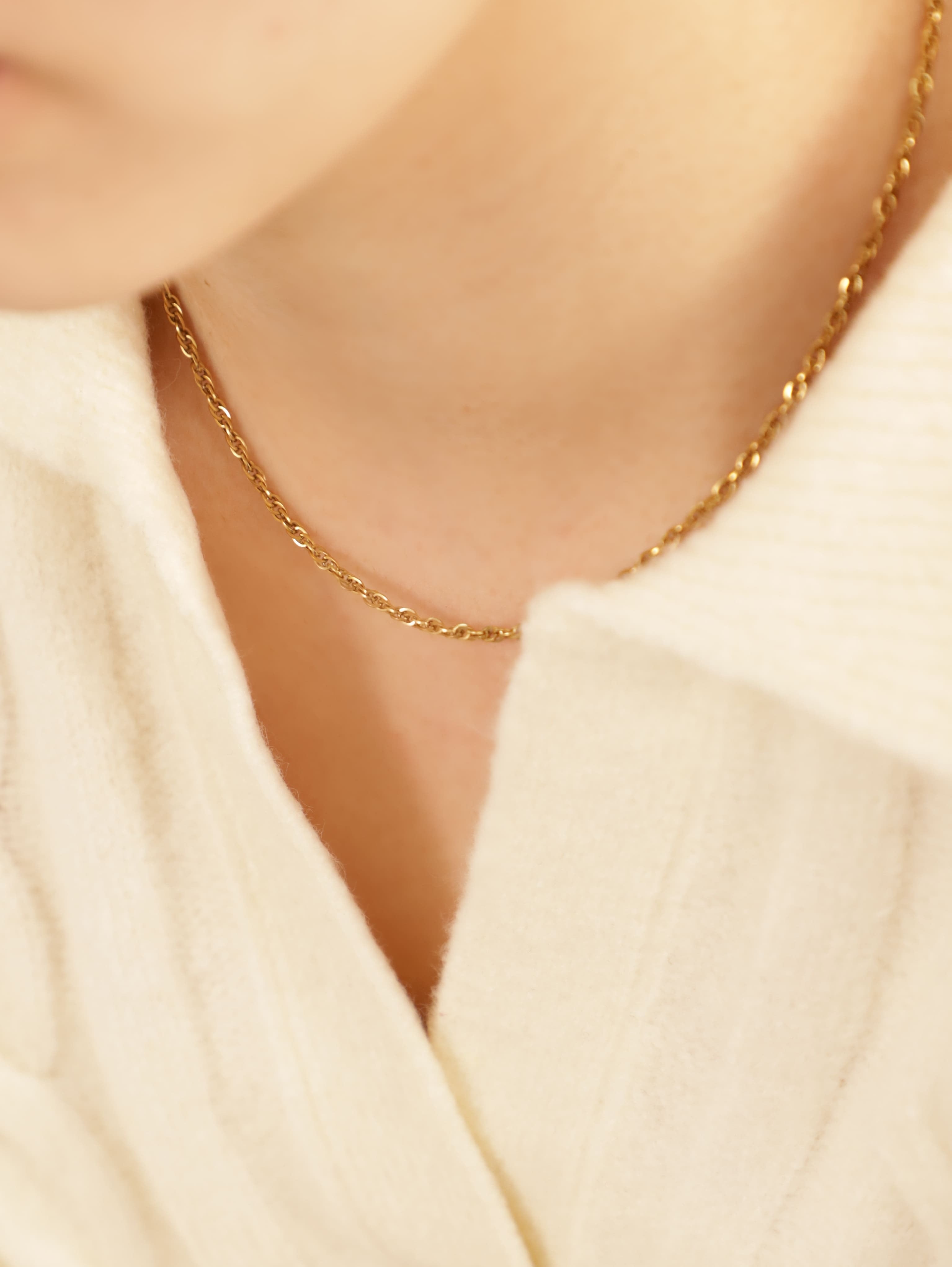 シンプルながらも存在感があり、他のアクセサリーとも組み合わせやすいデザイン性のあるチェーンネックレス