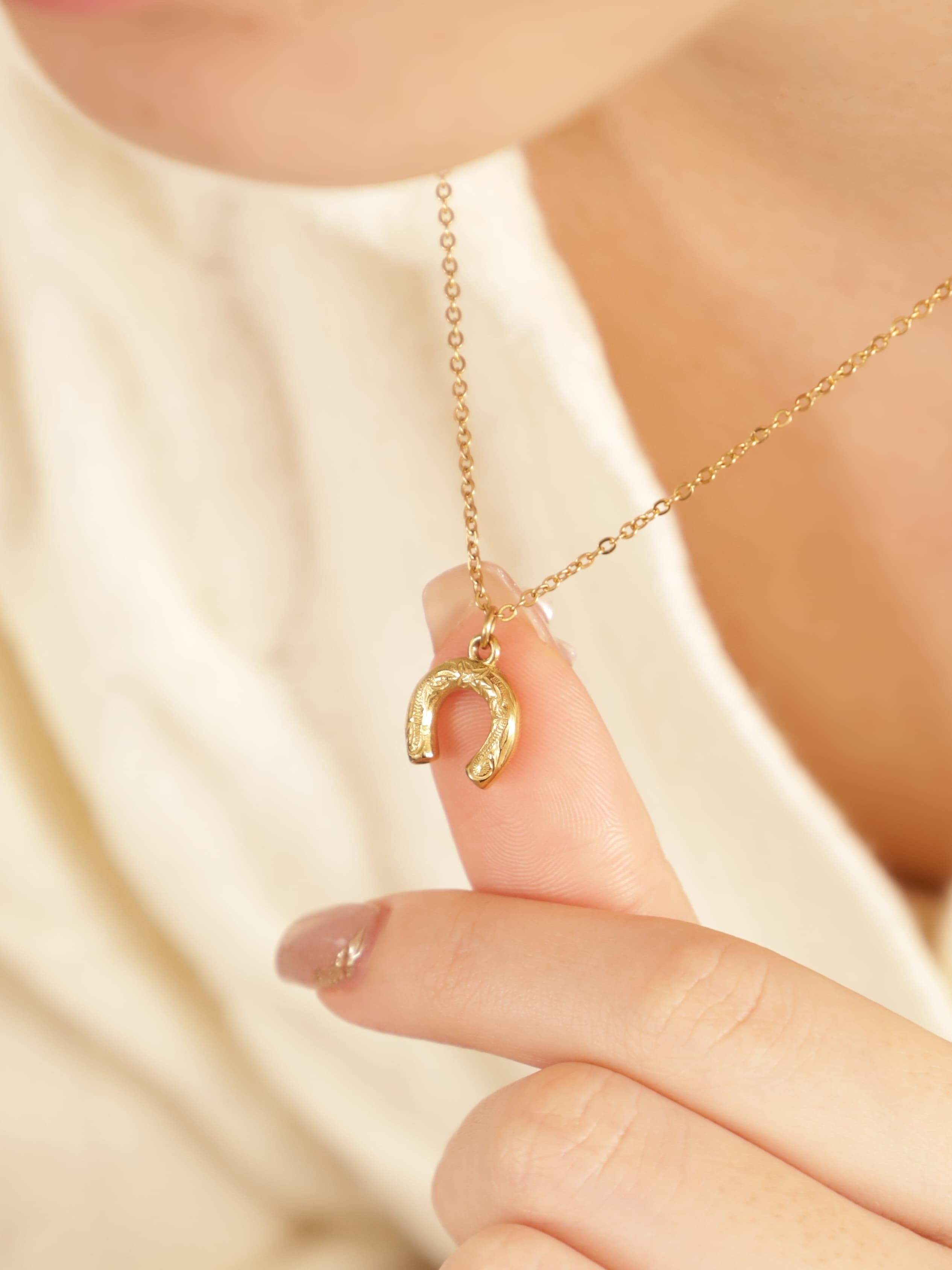 「幸せを溜め込む」という言い伝えのある馬蹄をモチーフにハワイアン柄を彫った上品な輝きがあるネックレスになります