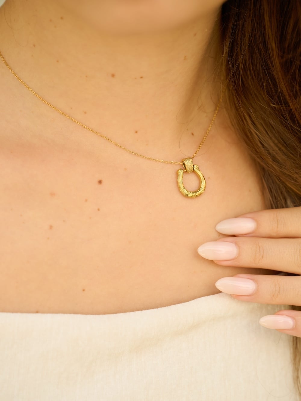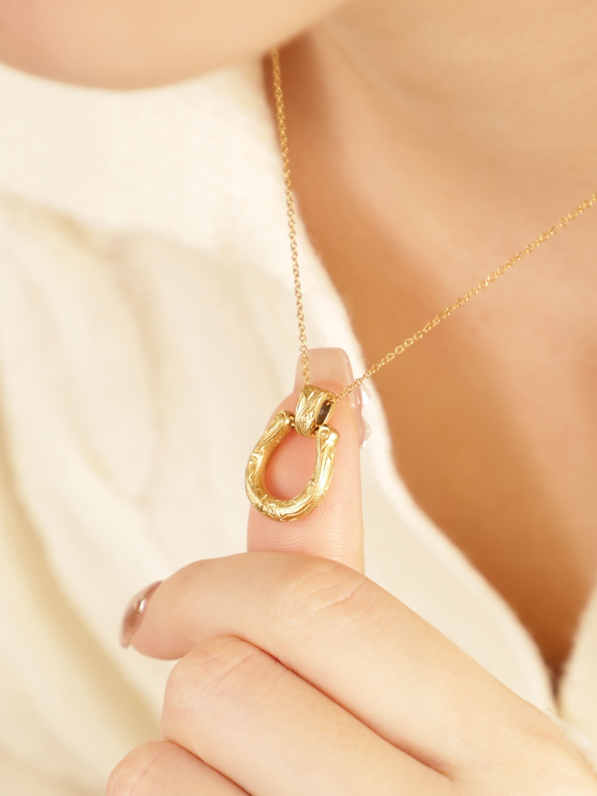 幸運の象徴・馬蹄デザインにグラスホルダー機能を備えた、スタイリッシュで実用的なネックレス