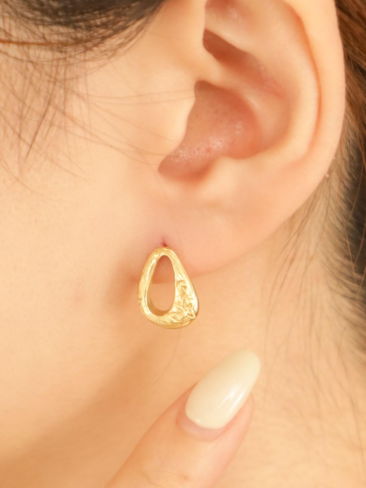 大きすぎず小さすぎない ハワイアンの"Puamelia"彫りが入り、より一層輝かしい耳元を演出....