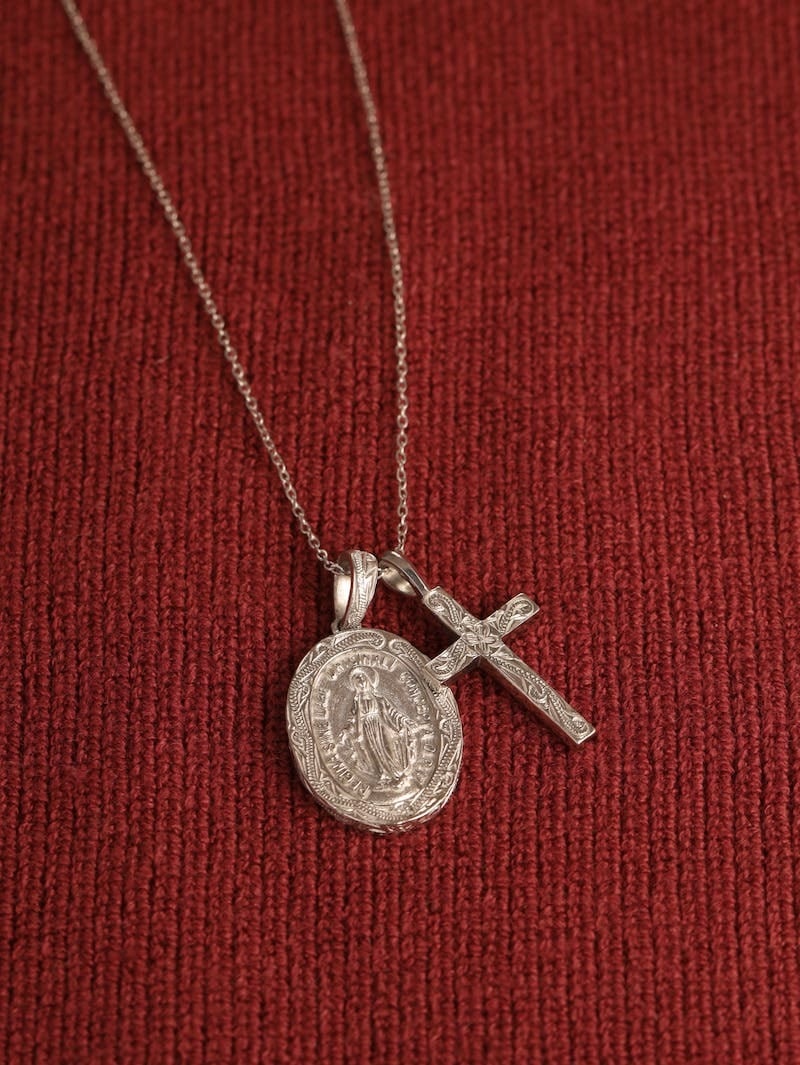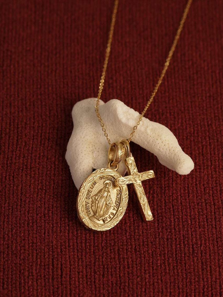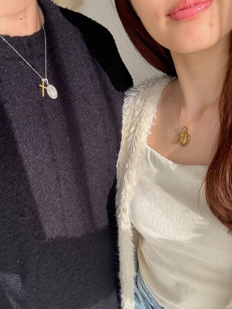 メダイと十字架のチャームがセットになった大人気商品のコラボネックレス