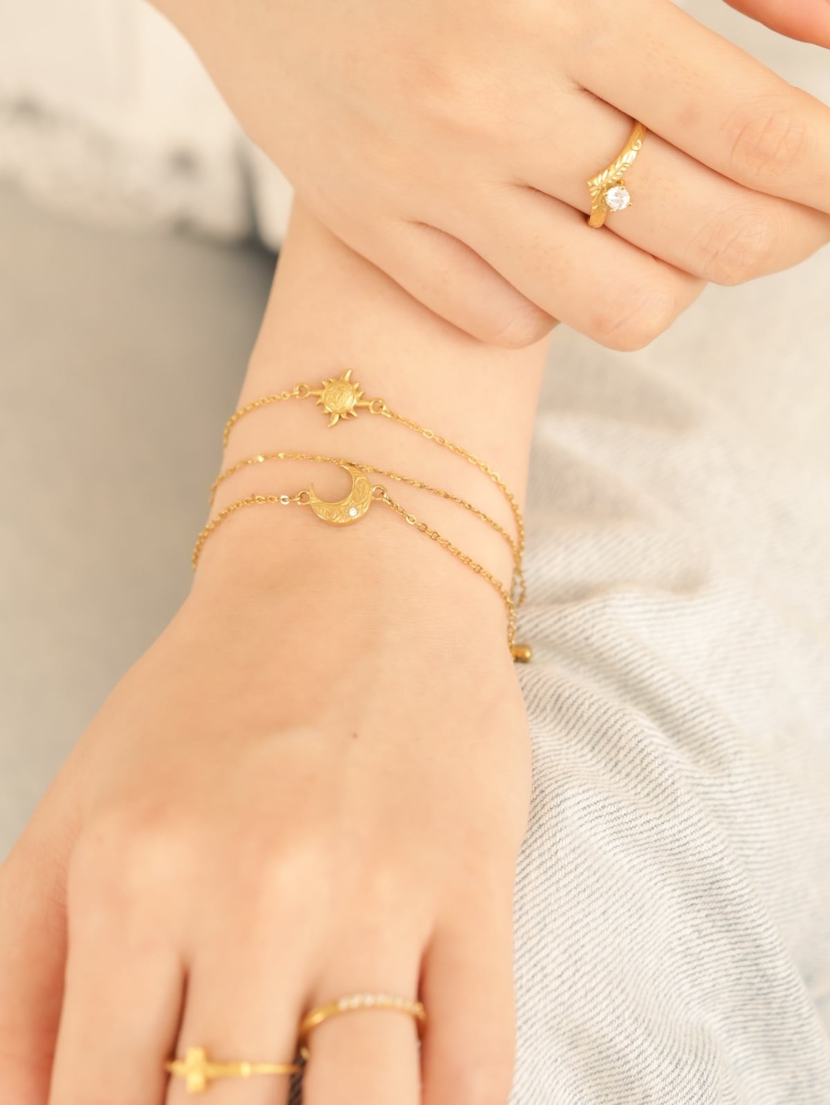 朝日のように、新しい一日の始まりを告げる光。夕日のように、一日の終わりを温かく見守ってbくれるブレスレット