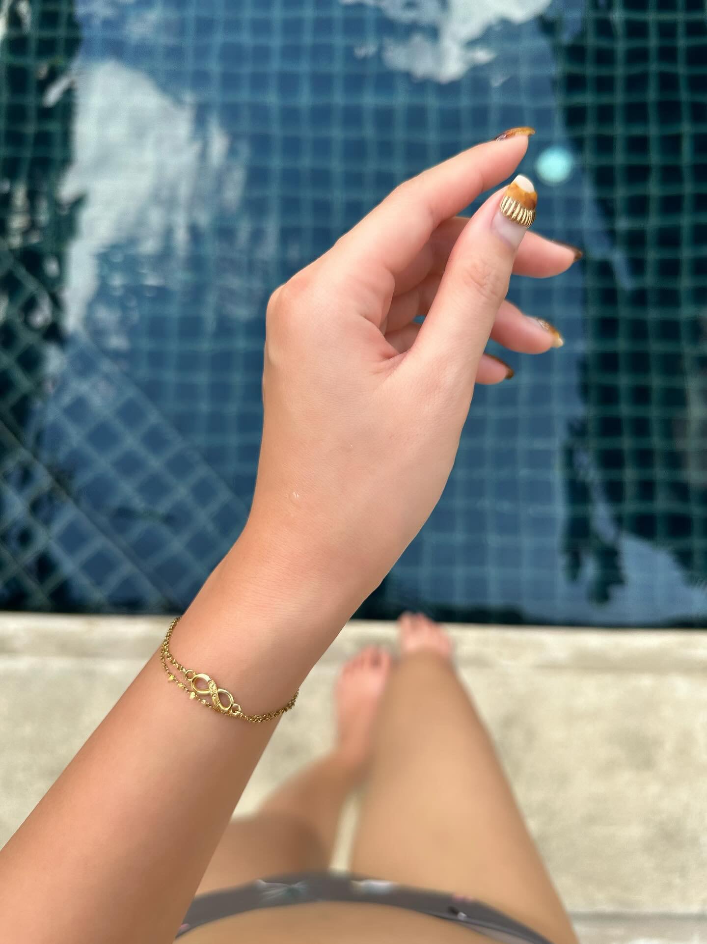 どんなブレスレットとも相性がよく、重ね付けでも1点でも手元を輝かせます