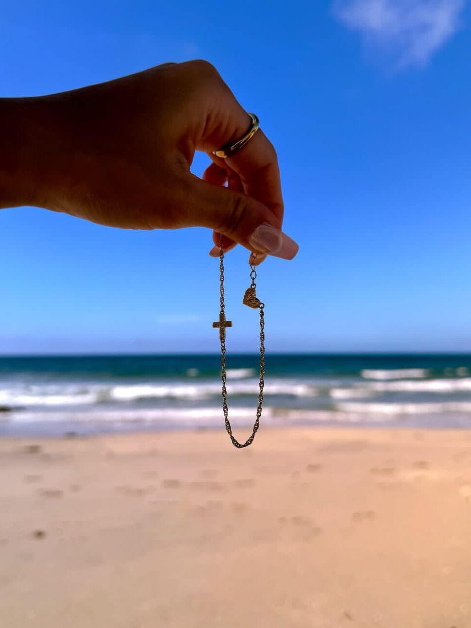 愛の象徴であるハートと信念を表すクロスが融合した、美しく意味深いアンクレット